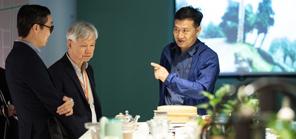 2019年4月24日台灣創意設計中心總顧問張光民與陳俊良設計師蒞臨臺灣文博會工藝館,茶3.1415展場參觀「器」區 -