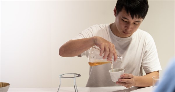 2019年4月24日至5月5日臺灣文博會工藝館,茶3.1415展場民眾參與茶未來實驗室活動,並準備享用問卷結果提供的茶啤酒 -
