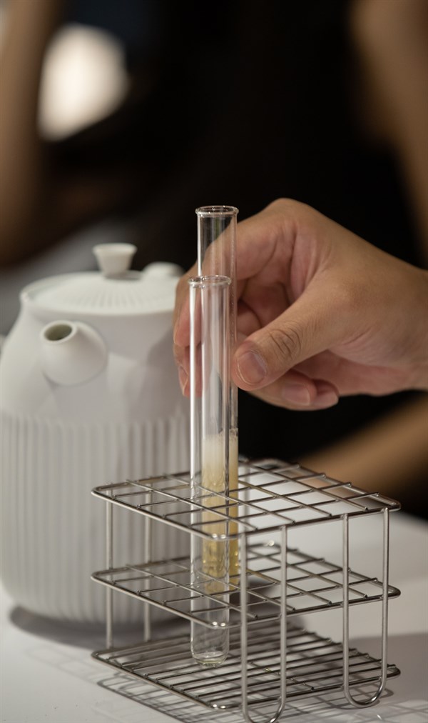 2019年4月24日至5月5日臺灣文博會工藝館,茶3.1415展場「茶未來實驗室」試管茶啤酒的飲用方式 -