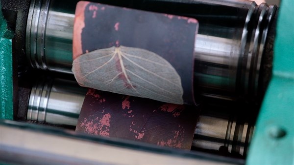 2019年4月24日至5月5日臺灣文博會工藝館,茶3.1415展場「藝」區影為微著金工金屬以機器壓紋過程 -