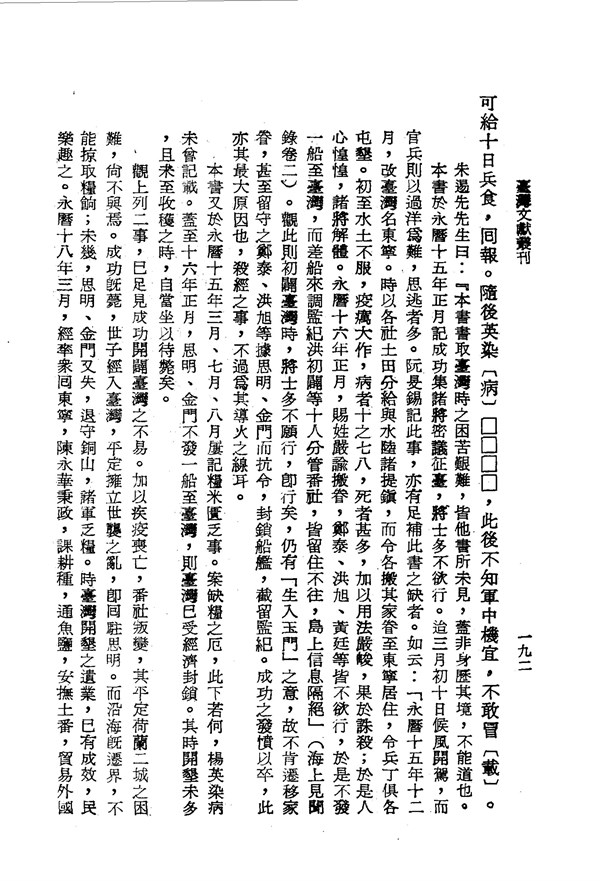 初至台灣水土不服,疫癘病死者甚多 從征實錄 台灣文獻史料叢刊