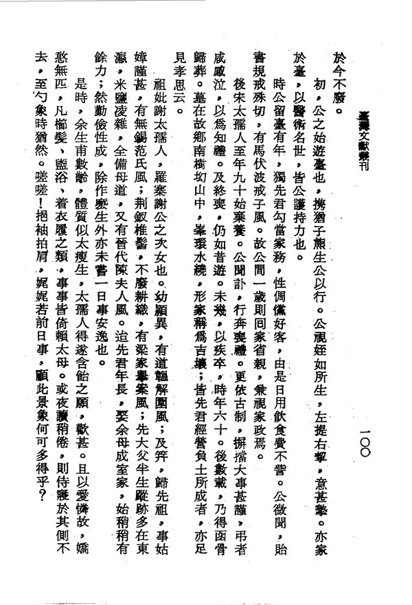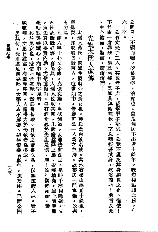 先太孺親侍先君湯藥數年,足疾乃痊 臺灣紀事附錄 台灣文獻史料叢刊 -