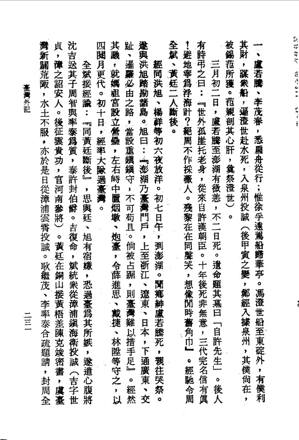 鄭經時不服水土病故及傷亡者多 臺灣外記卷六 台灣文獻史料叢刊 -