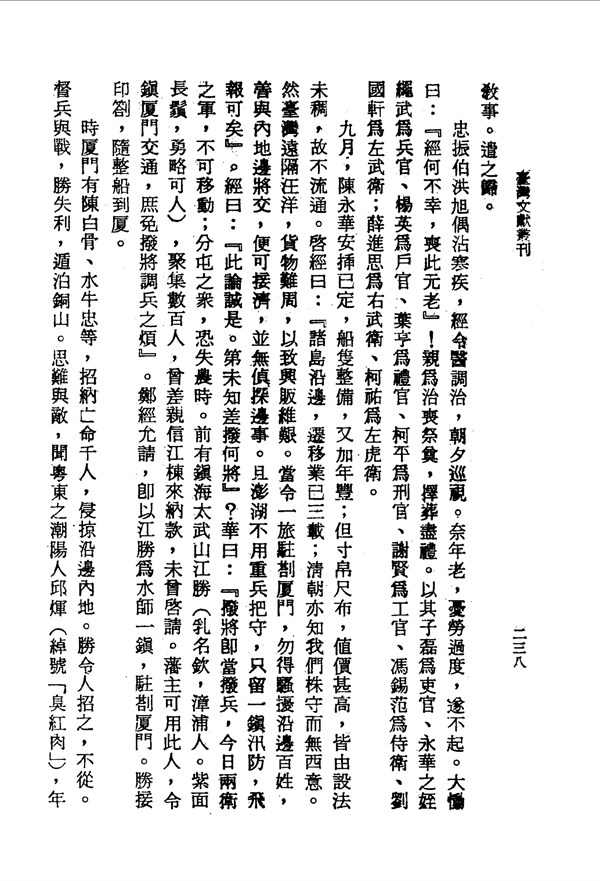 鄭泰在金門稱病不至 臺灣外記卷六 台灣文獻史料叢刊 -