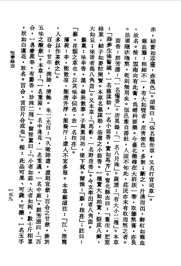 百合甘平,潤肺清熱,可為果、蔬、藥 恒春縣志卷九 台灣文獻史料叢刊