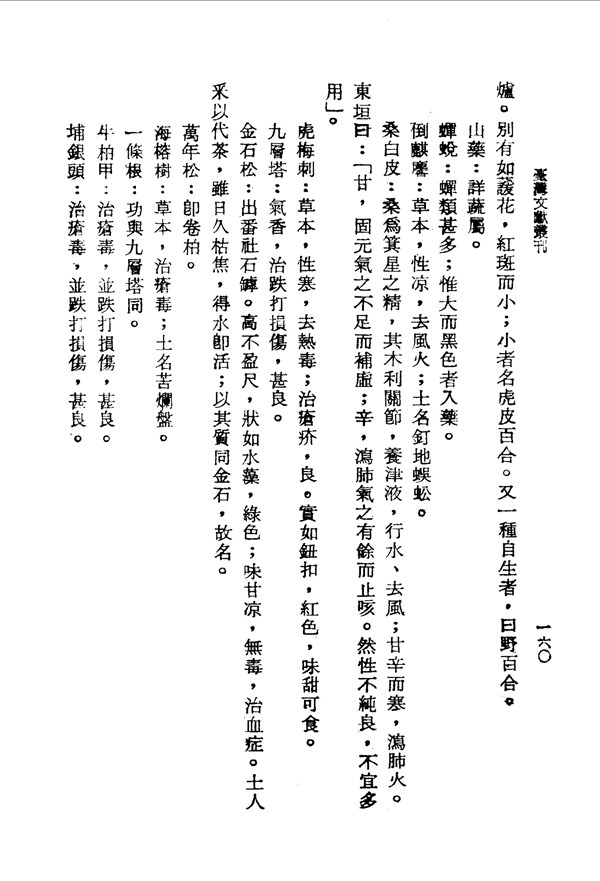 埔銀頭治瘡毒,跌打損傷亦可 恒春縣志卷九 台灣文獻史料叢刊 -
