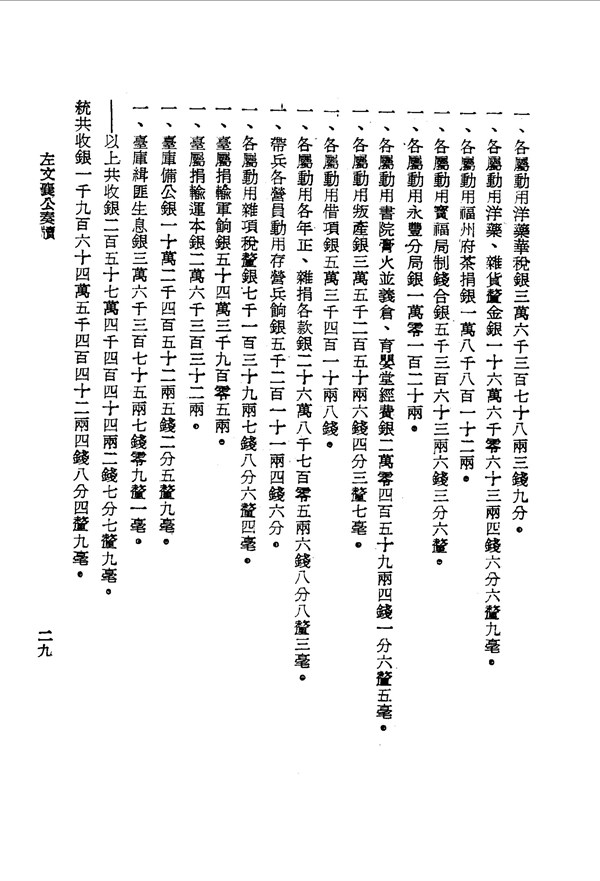 動用洋藥、雜貨釐金錢的金額 左文襄公奏牘卷一 台灣文獻史料叢刊 -