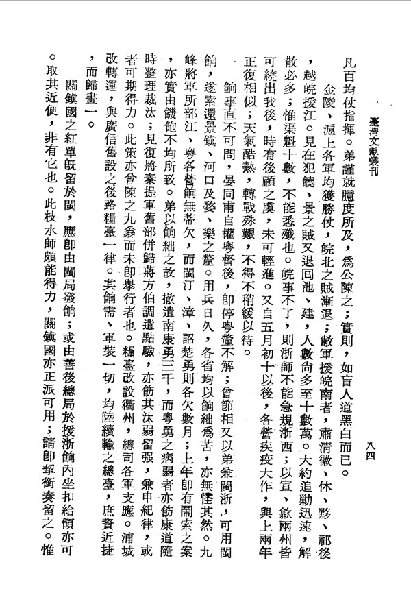 戰事尚順遂,瘧病剛痊癒而腹瀉不停,將於數日內前駐富陽 左文襄公奏牘卷二 台灣文獻史料叢刊 -