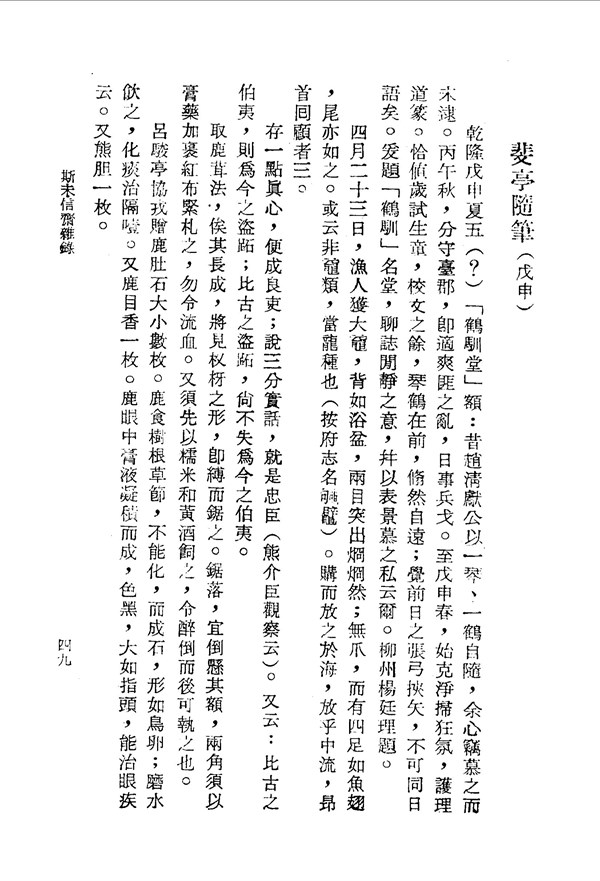 治療魚骨哽於喉的方法 斯未信齋雜錄 台灣文獻史料叢刊 -