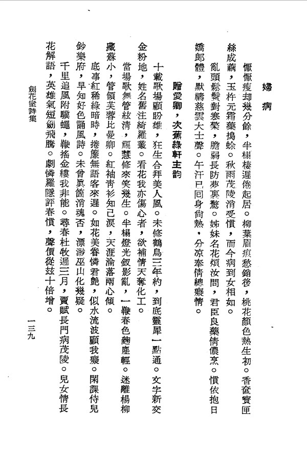婦病之病容與服藥 劍花室詩集 台灣文獻史料叢刊 -