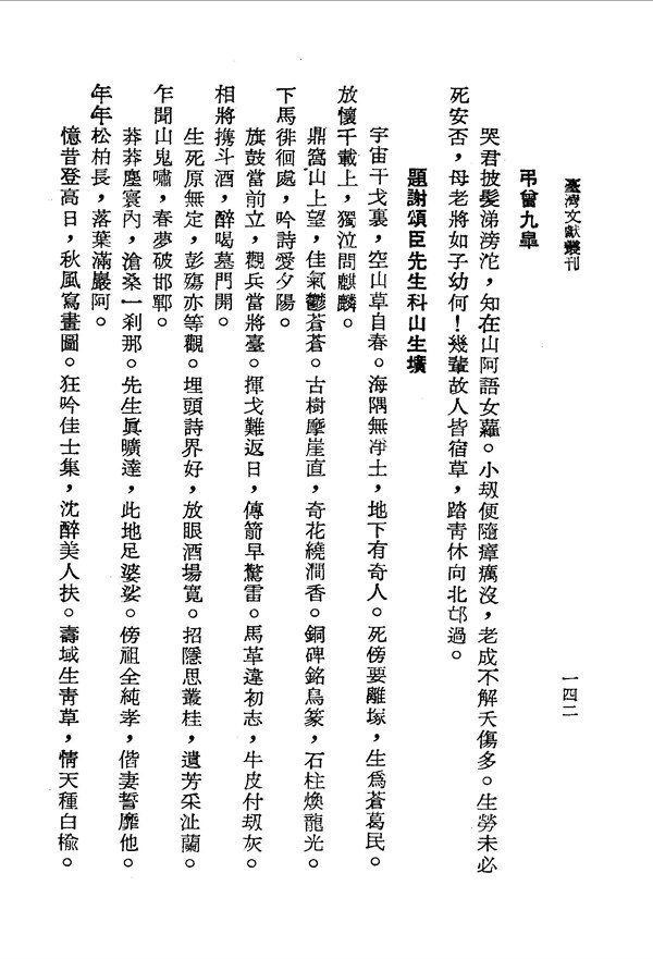 連橫哭曾九皋 劍花室詩集 台灣文獻史料叢刊