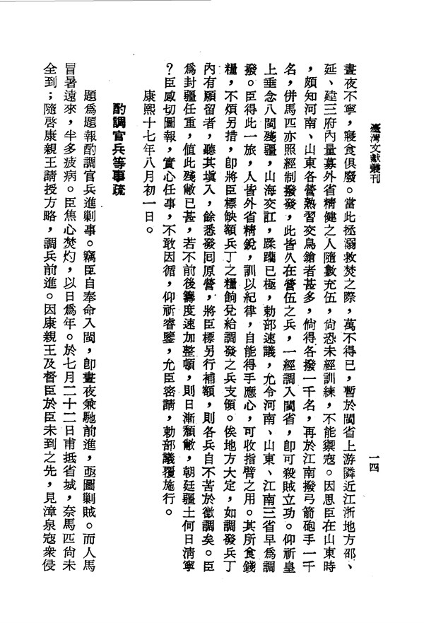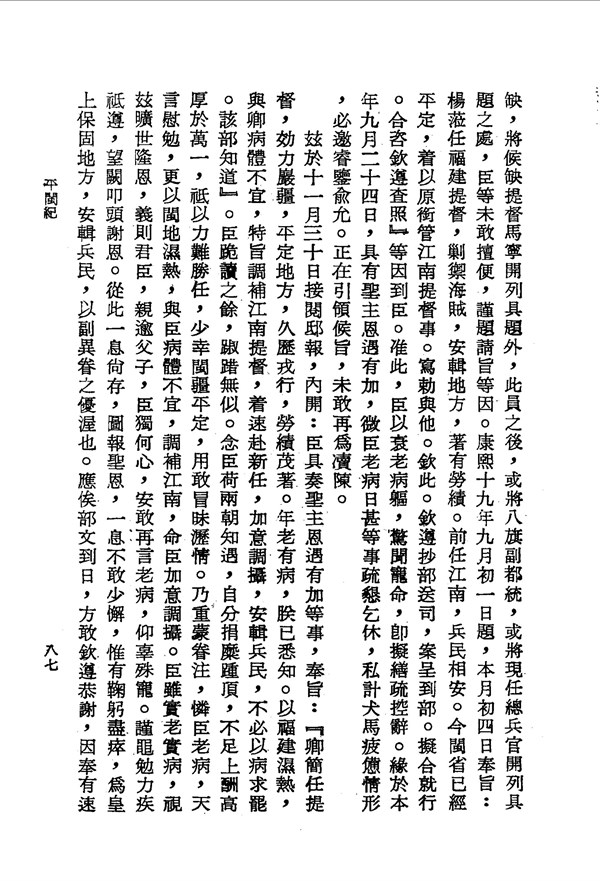 因年老有疾與福建濕熱,轉調補江南提督 平閩紀卷之三 台灣文獻史料叢刊 -