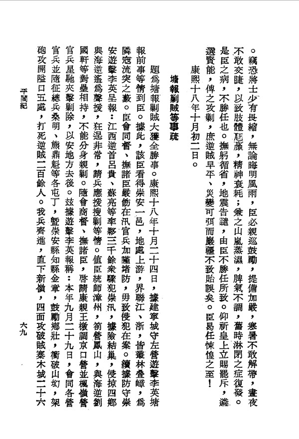 楊捷帶兵不懈及舊病復發,請求辭任另尋賢能繼任 平閩紀卷之三 台灣文獻史料叢刊 -