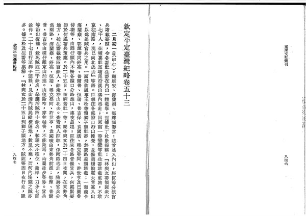 貴州、湖南官兵路程較遠,屯練降番素性不耐濕熱,令先行撤回 欽定平定臺灣紀略卷五十七 台灣文獻史料叢刊 -