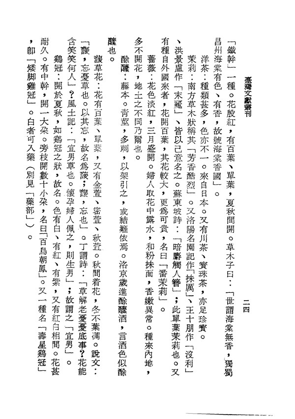 雞冠開於夏秋,如雞冠之狀,白者可入藥 臺灣縣志 台灣文獻史料叢刊 -