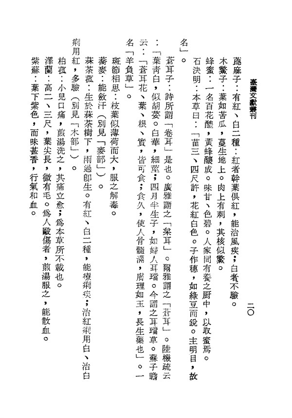 紫蘇而味甚香,行氣和血 臺灣縣志 台灣文獻史料叢刊 -