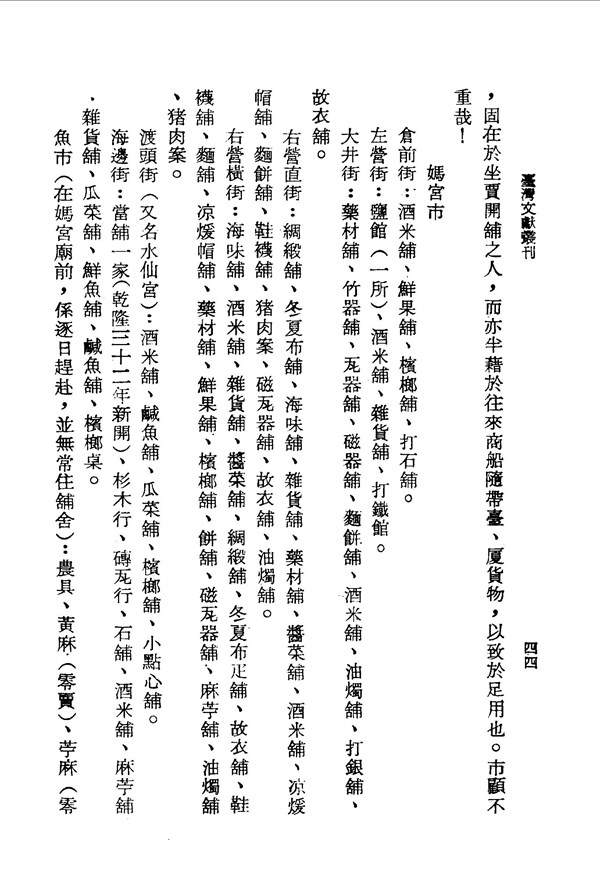 右營橫街有藥材等各式店鋪 澎湖紀略卷之二 台灣文獻史料叢刊 -