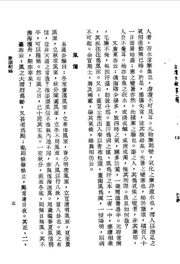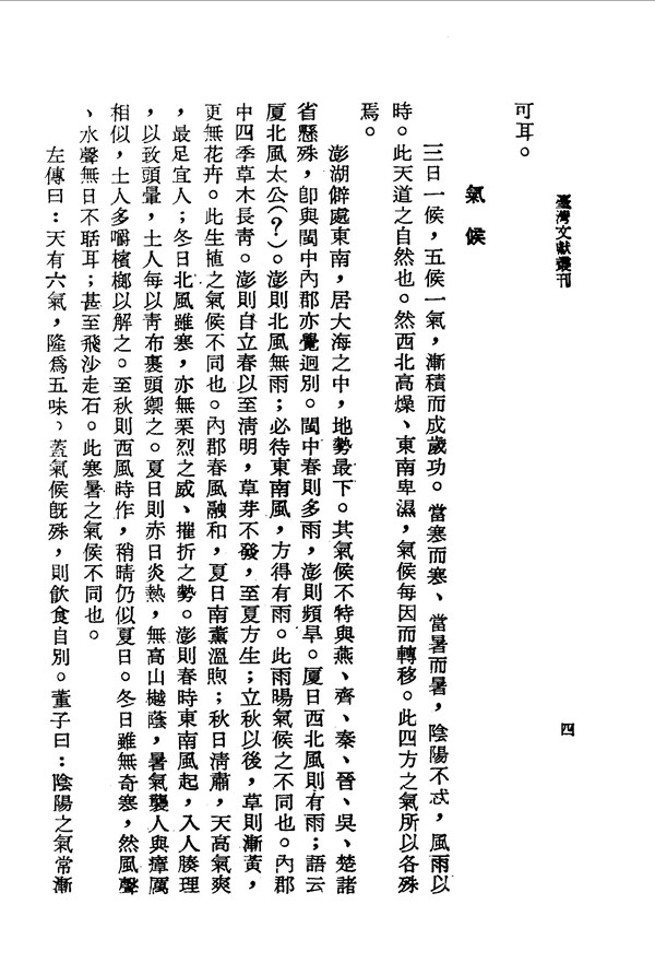 嶺南陰少陽多的氣候特性 澎湖紀略卷之一 台灣文獻史料叢刊 -