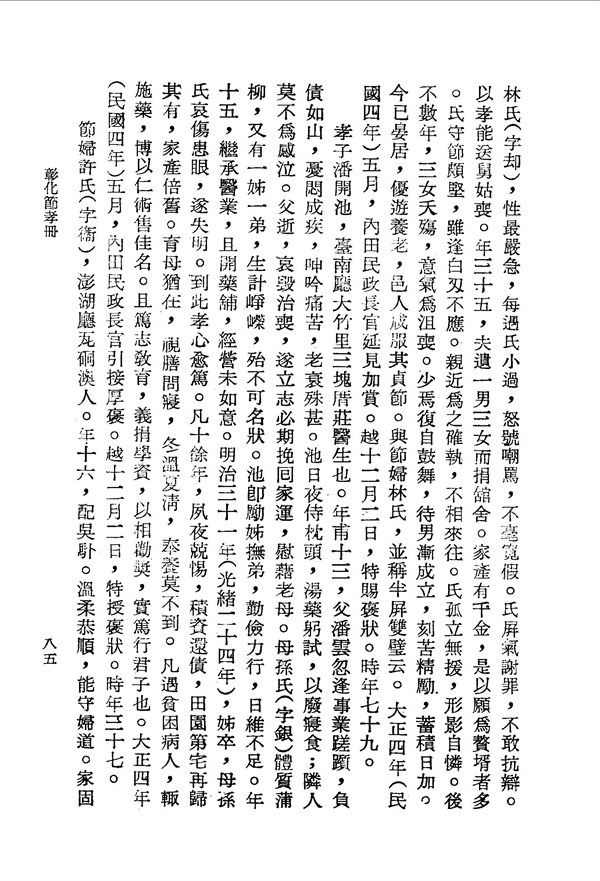 潘開池孝心照顧因哀傷眼而失明的母親 彰化節孝冊附錄 台灣文獻史料叢刊 -