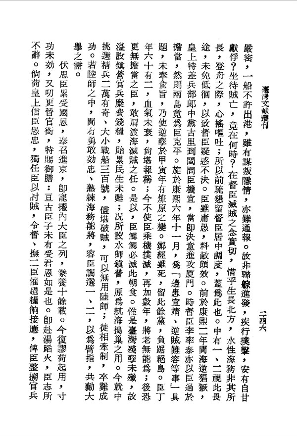 施琅來自北方,不熟水性,搭船嘔吐 澎湖紀略卷之十一 台灣文獻史料叢刊 -