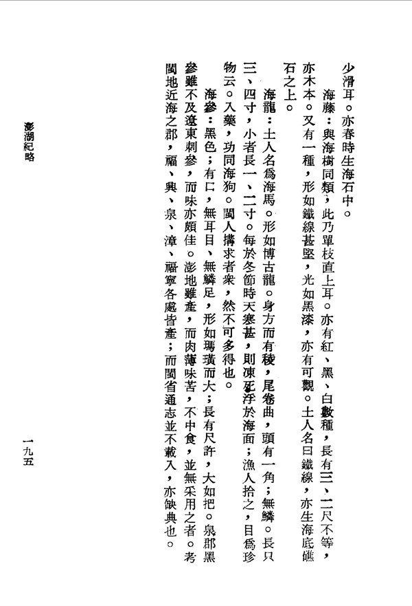 海龍,土人名為海馬,可入藥,功同海狗 澎湖紀略卷之八 台灣文獻史料叢刊 -