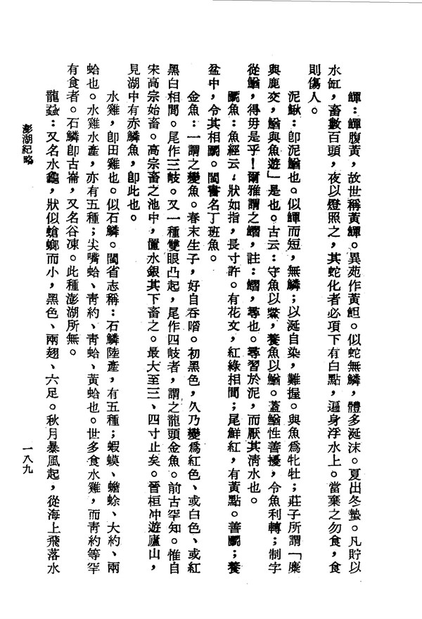 鱓似蛇無鱗,體多涎沫,若蛇化者項下有白點,不可食用 澎湖紀略卷之八 台灣文獻史料叢刊 -