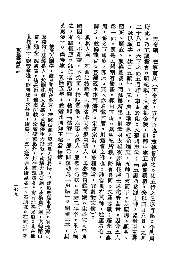 吳真人精岐黃術,以藥方濟人,里人建廟祭祀之 重修臺灣縣志卷六 台灣文獻史料叢刊 -