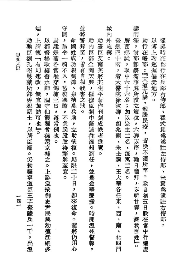 發銀命太醫院徐淑卿等至城內外施藥 思文大紀卷八 台灣文獻史料叢刊 -