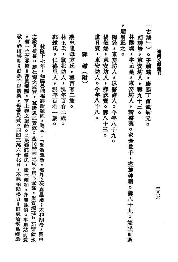 陶銓,東安坊人,以醫濟人 重修臺灣縣志卷十一 台灣文獻史料叢刊 -