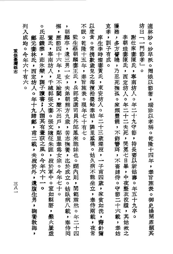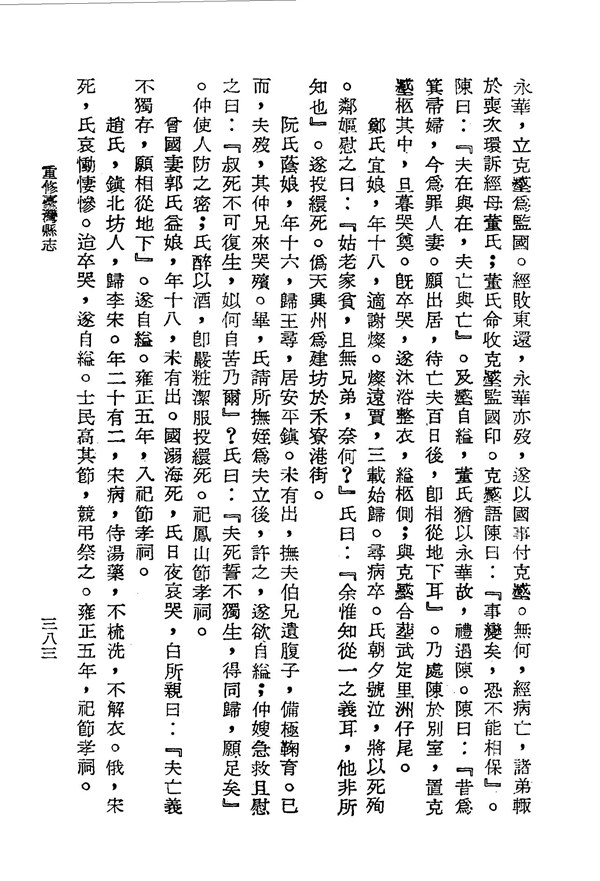蔡氏偕娘其丈夫生病,朝夕奉侍湯藥而不倦怠 重修臺灣縣志卷十一 台灣文獻史料叢刊 -