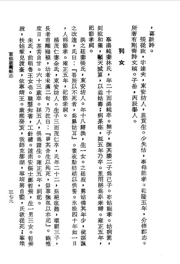 趙氏侍奉生病的李宋,李宋死後自縊 重修臺灣縣志卷十一 台灣文獻史料叢刊 -
