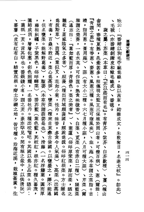 茼蒿性冷,味香,多食令人氣滿 重修臺灣縣志卷十二 台灣文獻史料叢刊 -