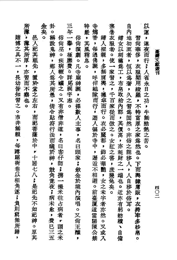 民俗崇尚巫術,以祝禱治病 重修臺灣縣志卷十二 台灣文獻史料叢刊 -