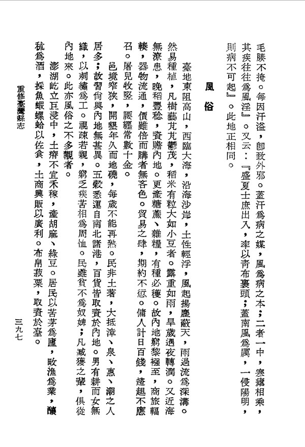 嶺南陰少陽多的氣候特性 重修臺灣縣志卷十二 台灣文獻史料叢刊 -