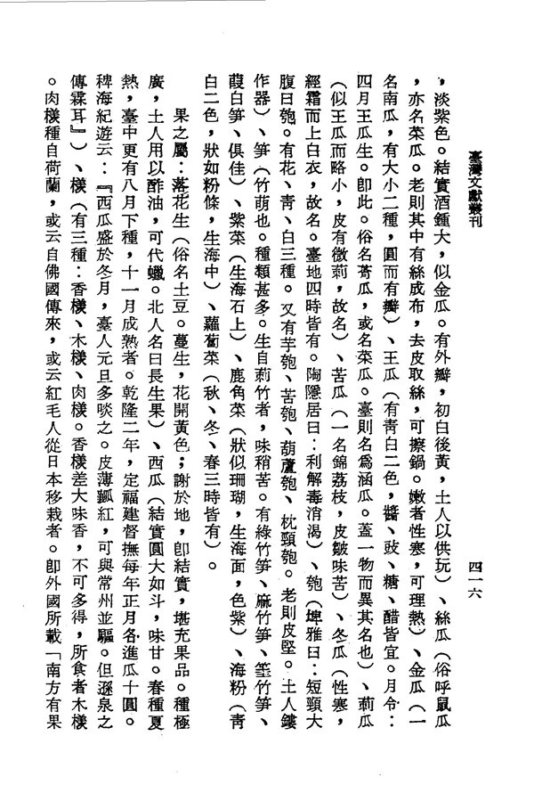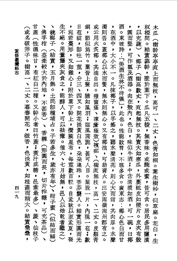 冬瓜性寒,經霜而上白衣故名,可利解毒消渴 重修臺灣縣志卷十二 台灣文獻史料叢刊 -