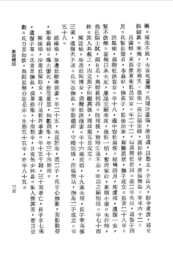 趙緣娘,夫沒於海,其撫養二子並侍奉翁姑,後憂傷過度而病 澎湖續編卷上 台灣文獻史料叢刊 -