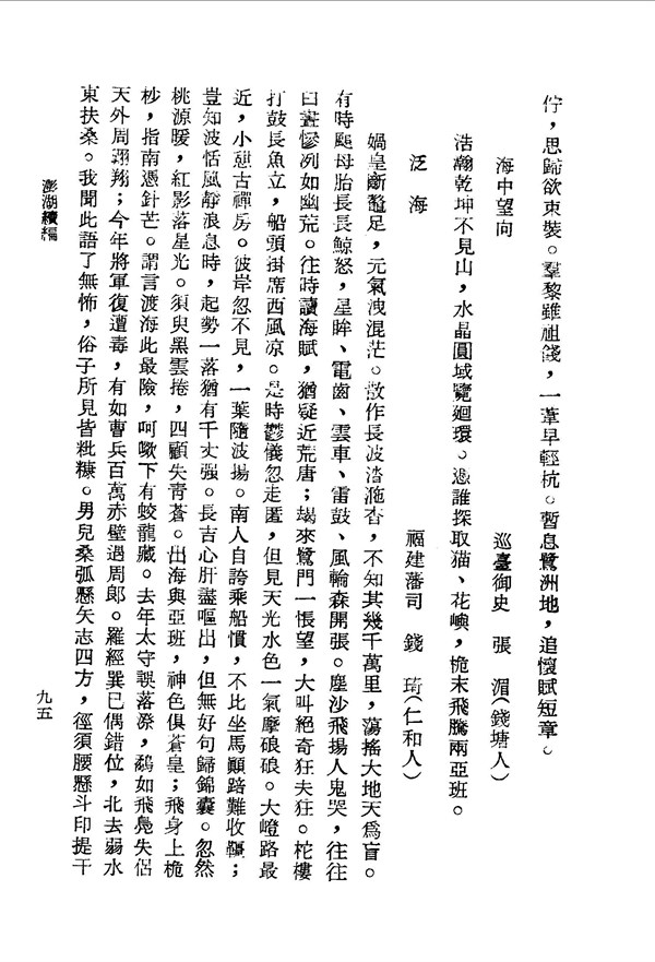 錢起作詩描述渡海遇風,因顛簸而嘔吐的情形 澎湖續編卷下 台灣文獻史料叢刊 -