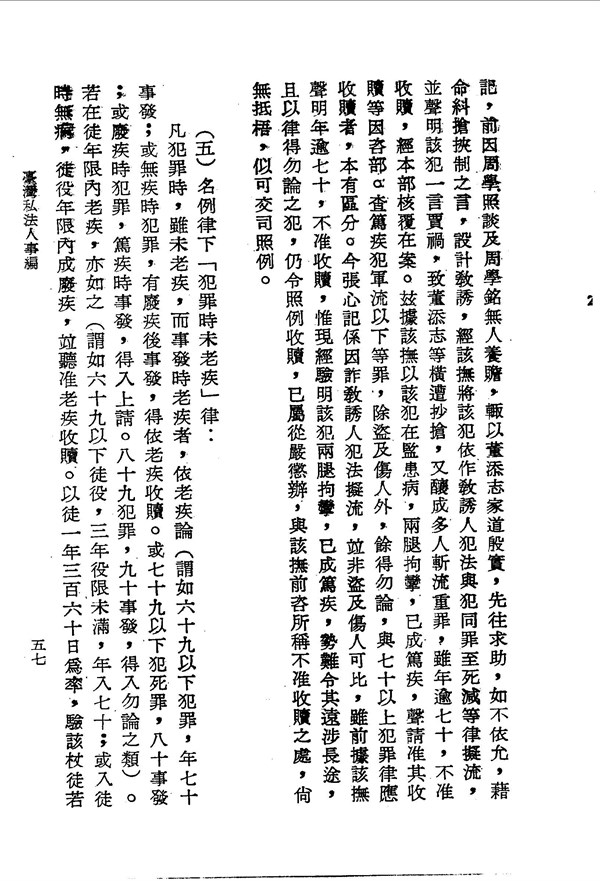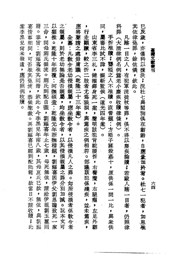 殺人犯李三札駝背且左右腳均有疾病,聲請以重度之症標準減刑,但認定其僅為殘疾之故駁回 臺灣私法人事編 台灣文獻史料叢刊 -