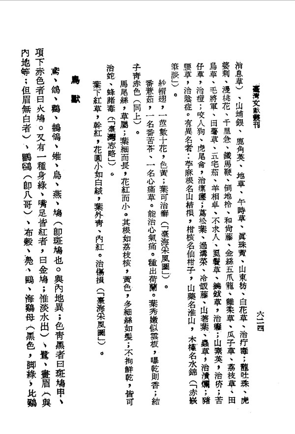 臺灣產之藥材,為各志所不載者 續修臺灣府志卷十八 台灣文獻史料叢刊 -