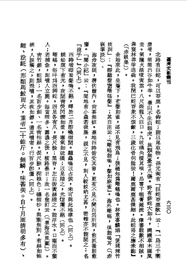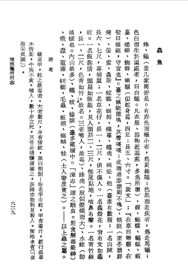蜥蜴,口毒而不螫人,若捕急,咬人則立斃 續修臺灣府志卷十八 台灣文獻史料叢刊 -