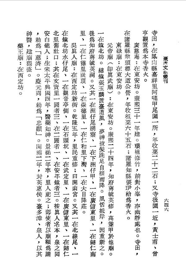 吳真人醫藥如神,里人建廟祀奉,臺多漳、泉人,建廟獨盛 續修臺灣府志卷十九 台灣文獻史料叢刊