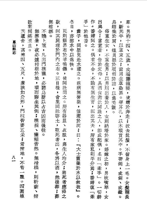 番俗新生兒浴於河,疾病也不用醫藥,以浴於河而治 鳳山縣志卷之七 台灣文獻史料叢刊