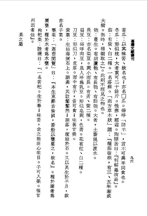 苦瓜,以其味苦,故名也 鳳山縣志卷之七 台灣文獻史料叢刊 -