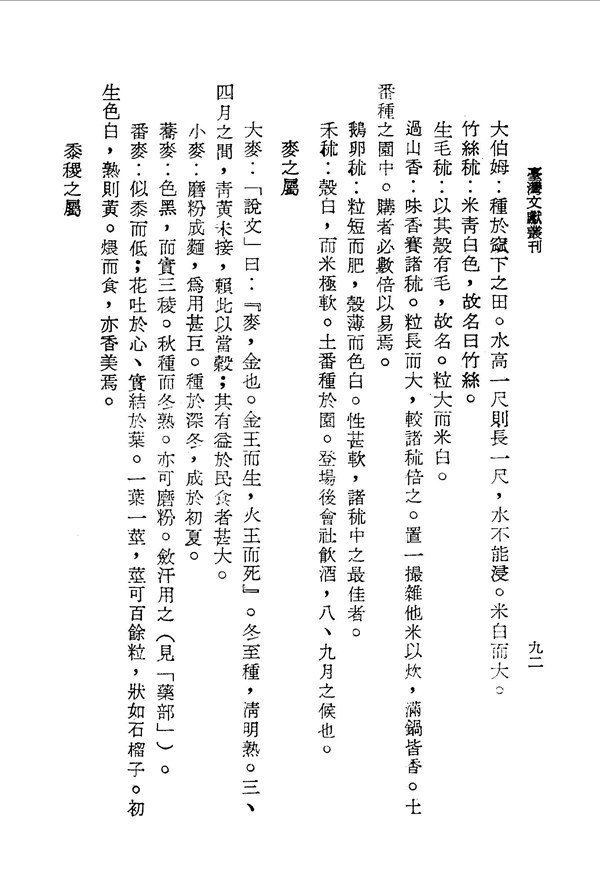 蕎麥的型態、功用 鳳山縣志卷之七 台灣文獻史料叢刊 -