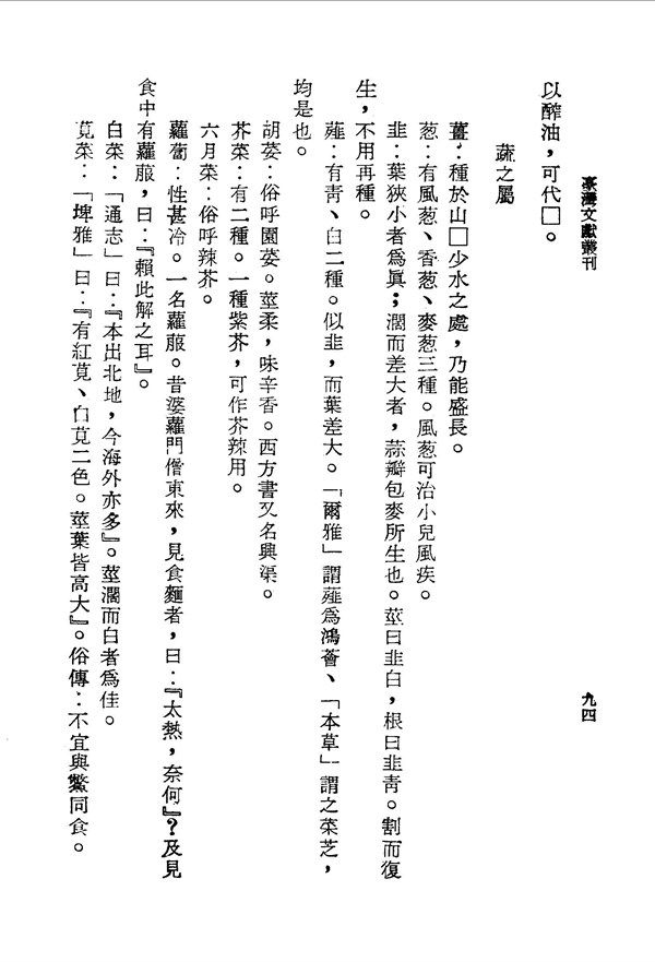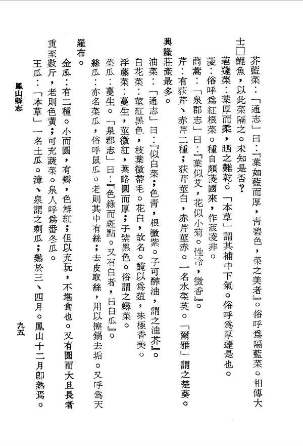 茼蒿,性冷,微香 鳳山縣志卷之七 台灣文獻史料叢刊 -