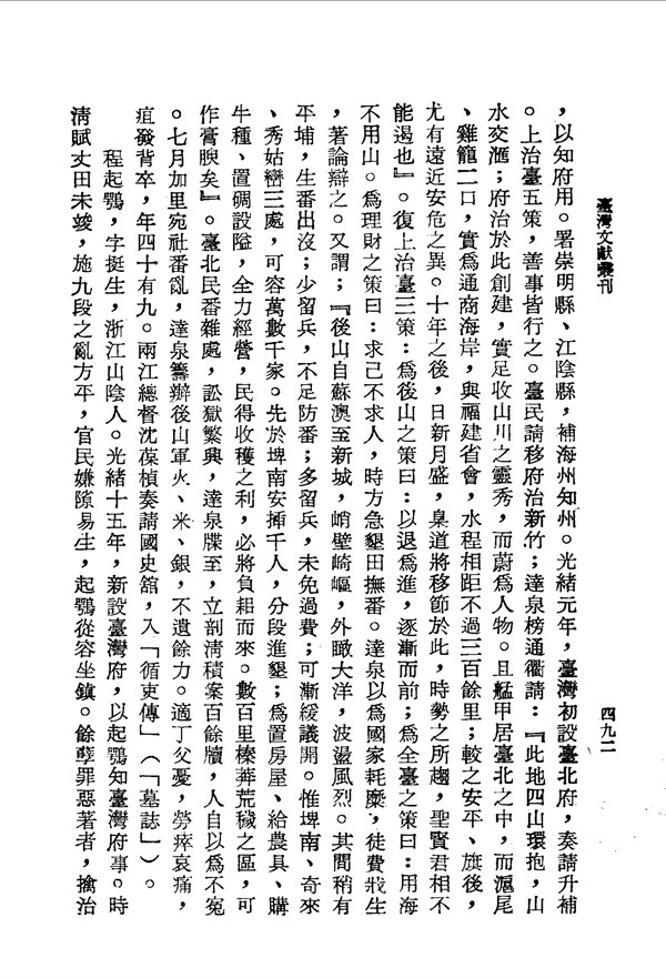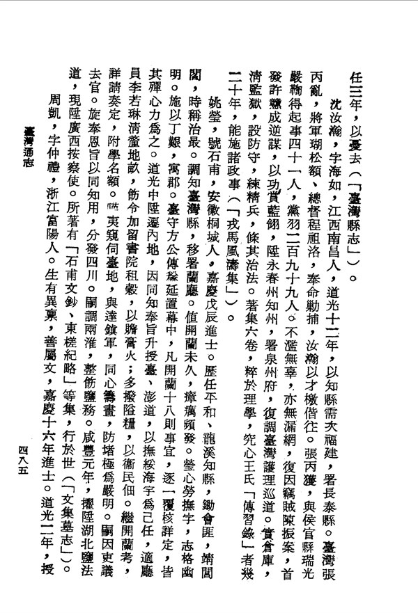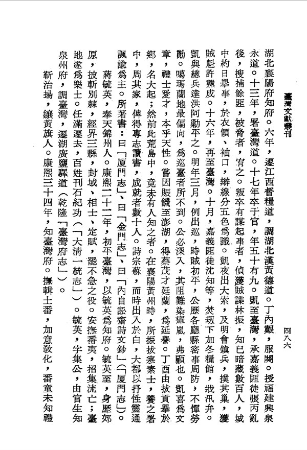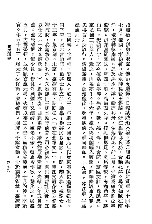 在臺灣積勞成疾、感染瘴氣後死於任內 臺灣通志 台灣文獻史料叢刊 -