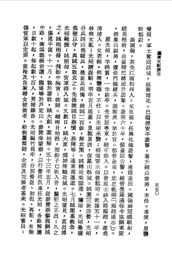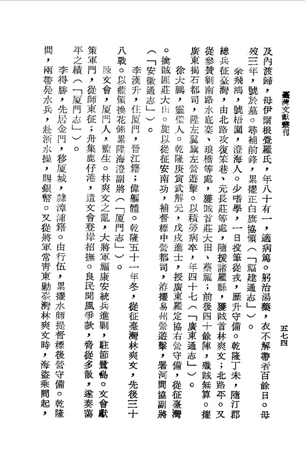 鴻猷感染寒疾 臺灣通志 台灣文獻史料叢刊 -