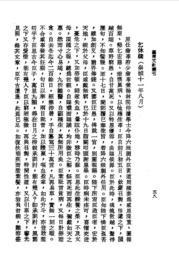 大臣患有痿痹告老還鄉 黃漳浦文選卷二 台灣文獻史料叢刊 -