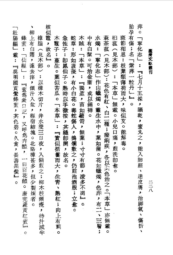 蛇草治毒蛇咬傷 諸羅縣志卷十 台灣文獻史料叢刊 -