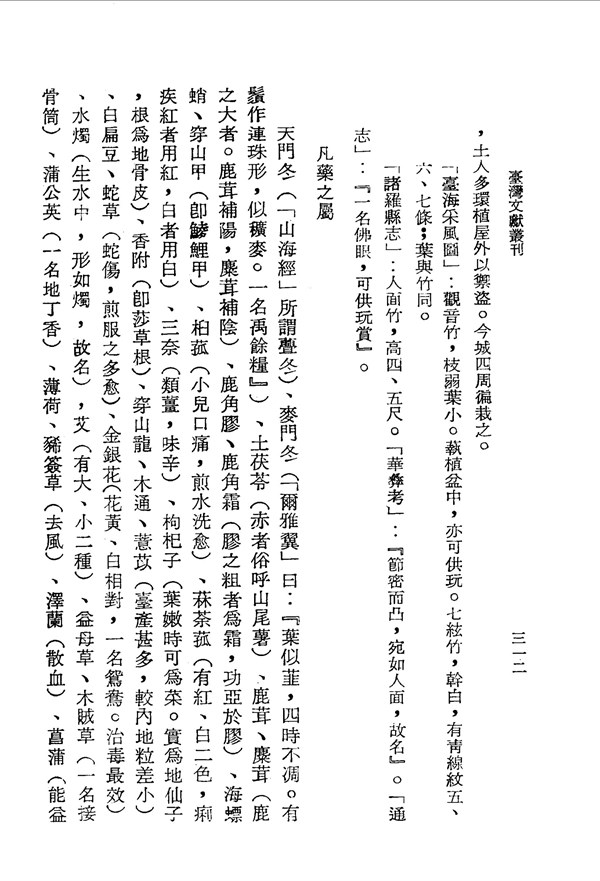 天門冬 重修鳳山縣志卷十一 台灣文獻史料叢刊 -